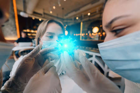 Scientist virologist holding model of new Coronavirus or COVID-19