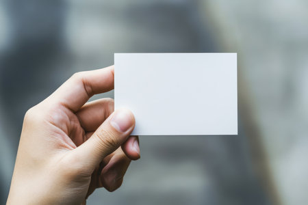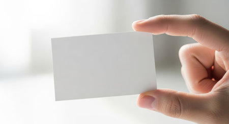 Minimal close-up of hand holding empty card, ready for branding, logo, contact, or professional identity design.