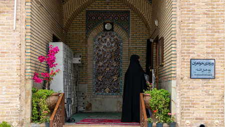 Shiraz, Iran - May 2019: Muslim women in veils entering the mosque.
