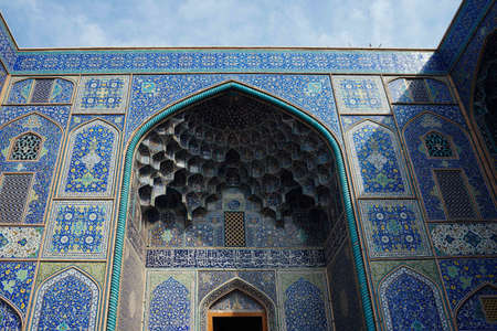 Isfahan, Iran - May 11, 2017:Mosque in Isfahan blue. Traditional ornaments and decorations. Iran