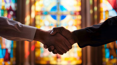 Business handshake between professionals signaling agreement and collaboration in a modern, professional setting