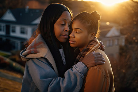 An image capturing the emotional bond between a young and an older woman, as they hug tightly, offering mutual support and reassurance