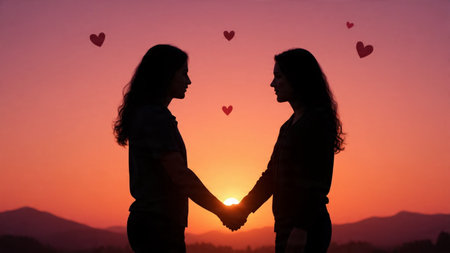 Realistic 3D illustration of a lesbian couple, 3D realistic