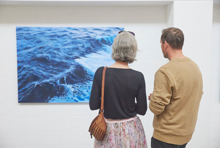 Visitors engaging with art in a vibrant gallery setting, appreciating creative masterpieces