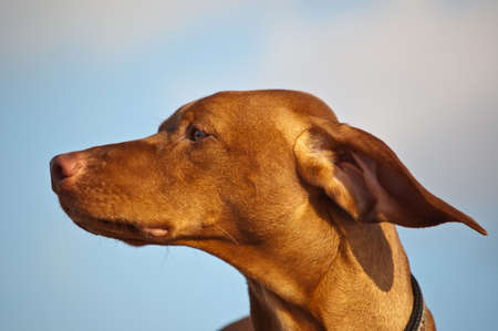 Portrait. The Hungarian hound. A hunting dog. Side view.