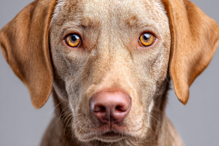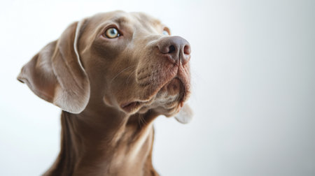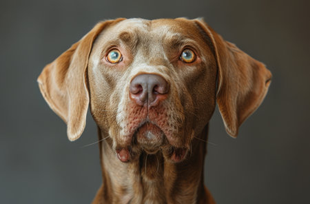 cute playful doggy or pet is playing and looking happy on background brown weimaraner young dog is posing cute happy crazy dog headshot smiling on