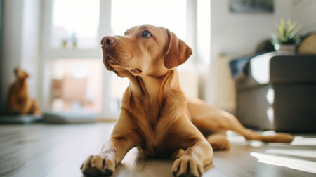 Charming Vizsla Dog Portrait Irresistible Warmth and Character Captured in a Cozy Indoor Setting