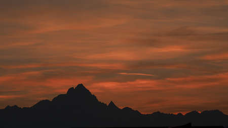 Beautiful Mountain Peak near White Pass and Skagway, Alaska, United States of America. Sunset or Sunrise Colorful Sky