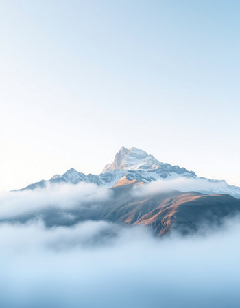 Mountain peak in clouds at sunrise. Caucasus Mountains, Georgia.