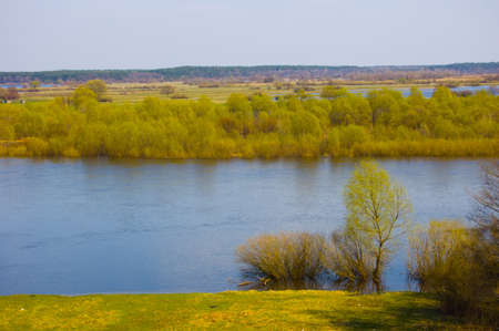 Beautiful river landscape by summer with green tree ashore