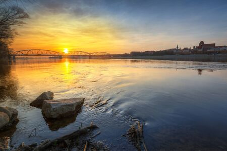 Sunset over Visla river in Warsaw, Poland