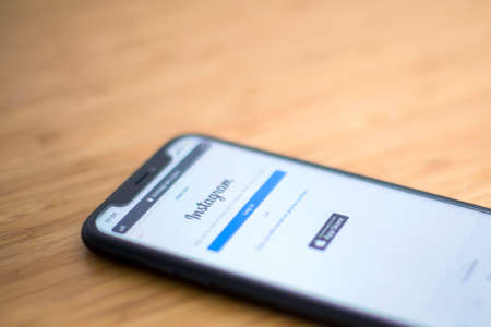BELGRADE, SERBIA - MARCH 9, 2020: Mobile phone with social networking service Instagram. Instagram is an American photo and video-sharing social networking service.