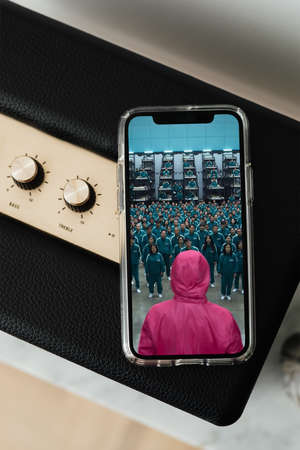 Clubhouse application view on the smartphone, controversy 2021 that hides behind the Social app. Clubhouse drop in audio chat application view on the smartphone