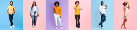 Diverse group of people showcasing lifestyle in a vibrant collage of colors