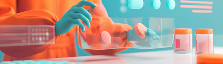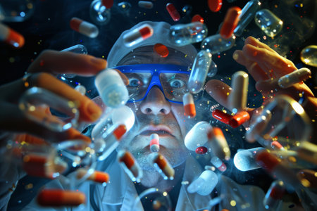 person, conducting laboratory experiments on potential new drug molecule, created with generative ai