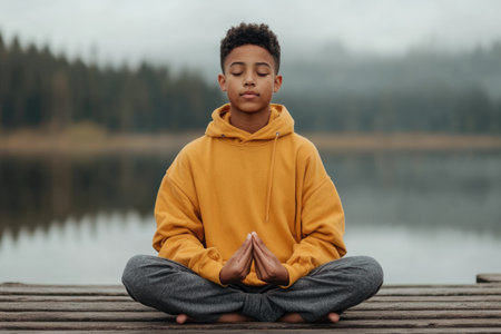 A man practicing mindfulness and meditation in a peaceful natural environment