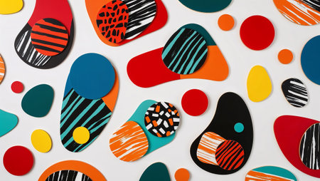 Bold and colorful abstract shapes and patterns create a visually striking modern art composition. AI generated image