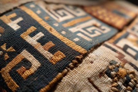 Close-up of intricate woven textile with geometric patterns.
