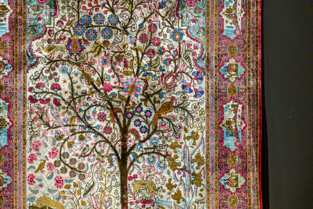 Traditional Turkish hand made carpet with embroidery. Selective focus.