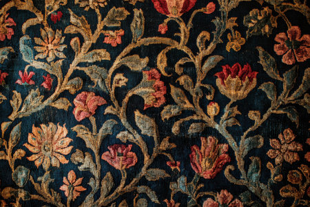 Explore the intricate design of a rich tapestry weaving intricate floral patterns
