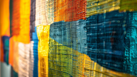 Colorful abstract textile art displaying modern weaving techniques