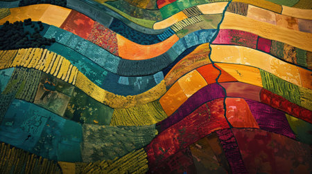 patchwork textile art, a patchwork print design features quilted fabric patches of various shapes and sizes, providing a visually stunning and eclectic appearance