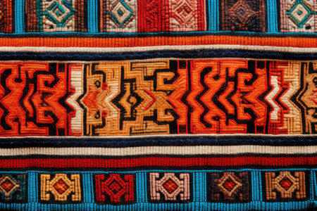 Indigenous cultures inspire ornate, woven tapestries of vibrant elegance generated by artificial intelligence
