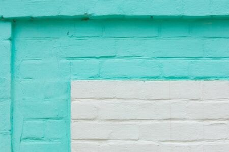 Texture, background, pattern. The brick is laid out decoratively. Brickwork, painted. Old brick wall with white and blue brick background. Ancient brick wall