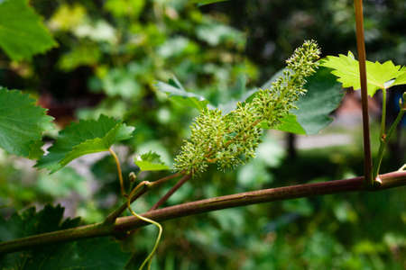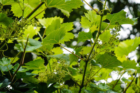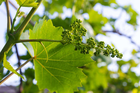 flower buds and leaves of shoots grapevine spring, agriculture nature background