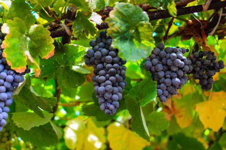 Wine grapes on the vine, blue grapes for winemaking