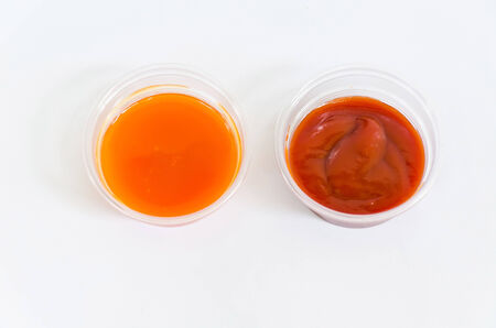 Tomato ketchup tasty and delicious mayonnaise in glass bowl isolated on white. Mock up. Isolated on white background.
