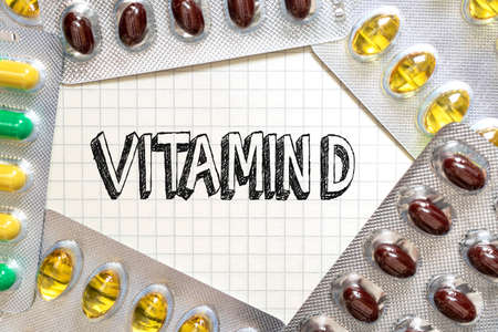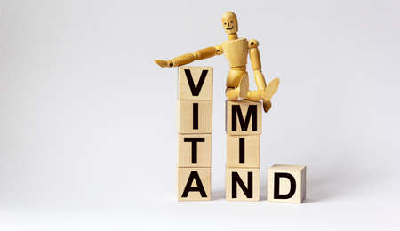 VITAMIN D is written on wooden cubes on a white background. Medical concept