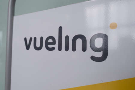 Budapest, Hungary - 1 November 2021: Vueling logo in airport, Illustrative Editorial.