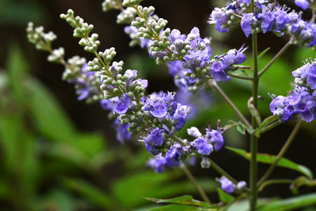 Blue flower of Chaste tree, or Monnikspeper in the wild. Vitex agnus-castus is a genus of tropical and sub-tropical flowering plants, Nature flora background.