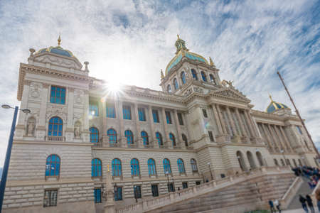 Neoclassical building of the Czech National Museum in famous Wenceslas square in Prague