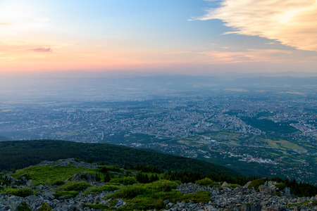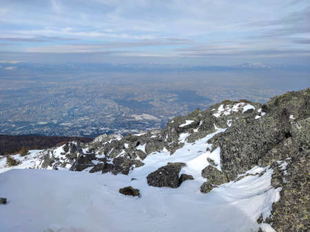 Amazing Panorama of city of Sofia from Kamen Del Peak at Vitosha Mountain, Bulgaria
