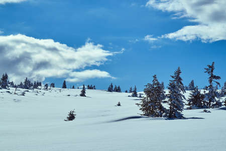 Winter landscape of Kamen Del peak at Vitosha Mountain, Sofia City Region, Bulgaria