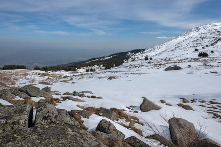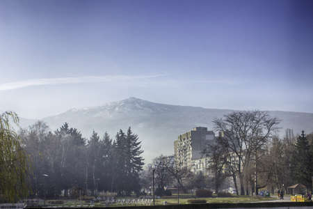 Scenic view to the snow capped ridge of Kopitoto in the Vitosha mountain in Sofia, Bulgaria.