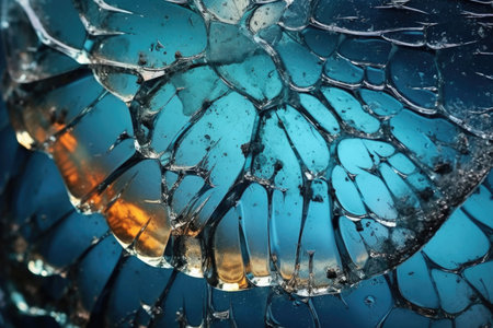 close-up of a cracked aquarium glass with water droplets, created with generative ai