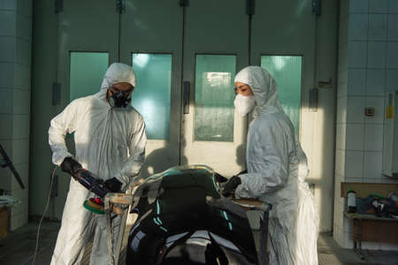 Restoring old oil painting, conservator removing varnish from an oil painting