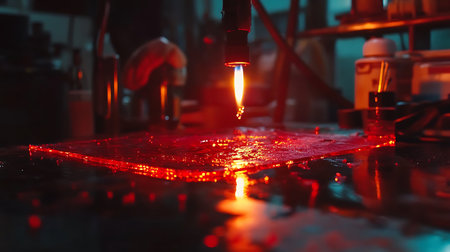 Close up of a hands working with precision on reflective surface. Photo with a subtle grain, soft focus blur