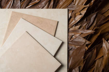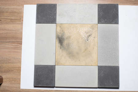 Colored samples of ceramic tiles for kitchen or bathroom interior material design of house, floor, porcelain stoneware.