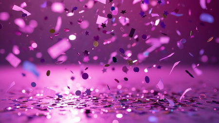 Purple glitter and confetti with bokeh background. 3d rendering