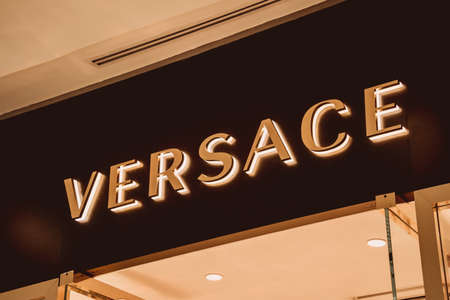 PHUKET, THAILAND - MAY 29, 2022: Versace brand retail shop logo signboard on the storefront in the shopping mall