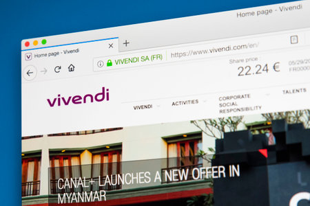 LONDON, UK - MAY 29TH 2018: The homepage of the official website for Vivendi SA - the French mass media conglomerate, on 29th May 2018.