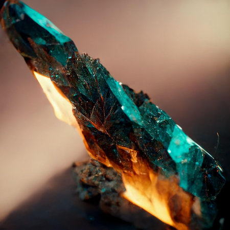 Chrysocolla is a hydrated copper cyclosilicate (Сu, Al)2Ð2Si2O5(ОÐ)4H2O. Cyan (blue-green) crystal. Macro. Beautiful fantastic background for successful business projects and other Your variant.