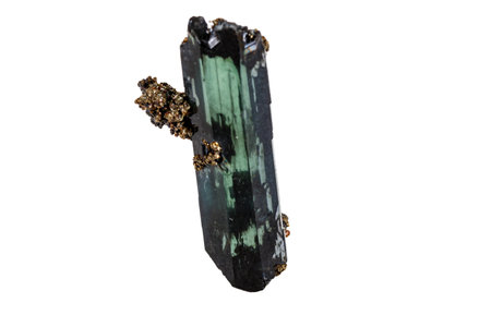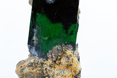 Macro mineral Chrome Dravite Tourmaline on a white background close up