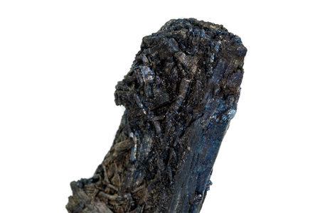 Macro stone mineral Antimonite, Stibnite on a white background close up