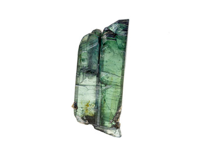 Natural rough Indicolite gemstone on white background (Tourmaline gemstone group)(selective focus)