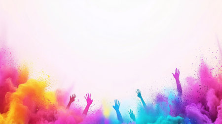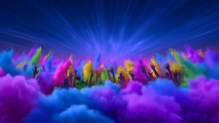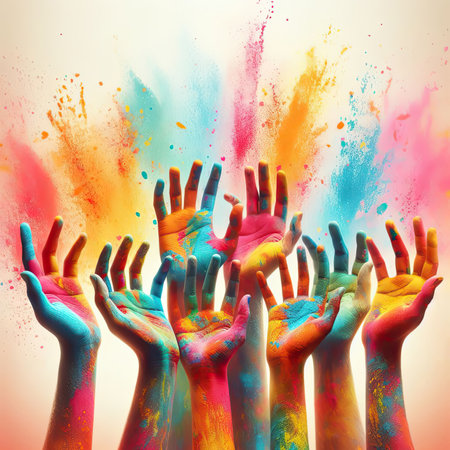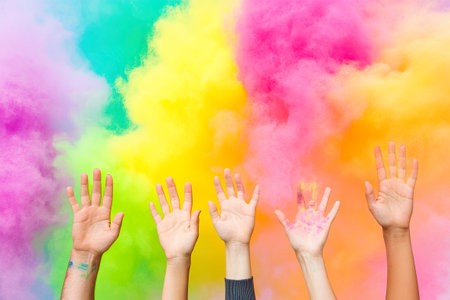 Hands reaching for joy in colorful holi festival celebration